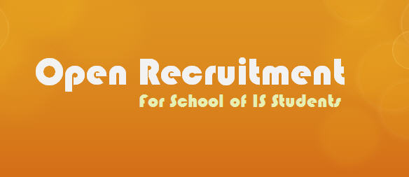 HomeNewsOpen Recruitment For School of IS Students Open Recruitment For School of IS Students 04 Apr 2012 News School of IS membuka peluang bagi para mahasiswa School of IS terlibat di dalam project, kesempatan terbuka bagi mahasiswa yang telah memiliki keahlian atau pengalaman dalam bidang Programming, Analisa dan Perancangan Sistem dan Perancangan Web. Share to your friends