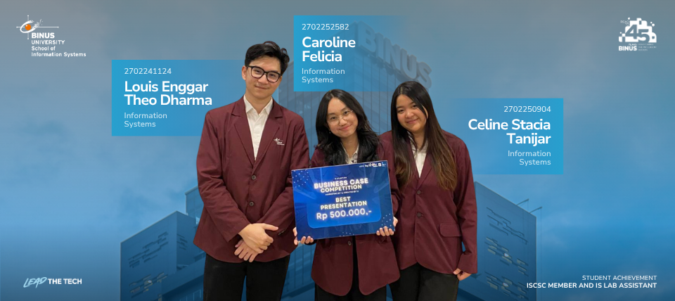 14 Agustus 2025 – Sebuah prestasi membanggakan kembali diraih oleh mahasiswa School of Information Systems, BINUS University. Tim Carcelis yang beranggotakan Louis Enggar Theo Dharma, Caroline Felicia, dan Celine Stacia Tanijar berhasil meraih penghargaan Best Presentation dalam ajang B-Startion Business Case Competition 2025 yang diselenggarakan oleh B-Preneur, Universitas Bina Nusantara.