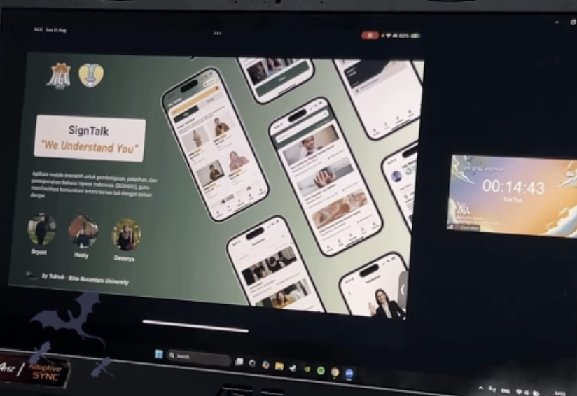Berbekal inovasi yang berdampak nyata bagi masyarakat, SignTalk berhasil menarik perhatian juri dan membawa Tim Toktok melaju hingga Top 8 Finalis. Dalam babak final, Tim Toktok mempresentasikan keunggulan SignTalk sebagai solusi digital yang tidak hanya memiliki nilai edukasi, tetapi juga potensi bisnis yang berkelanjutan.